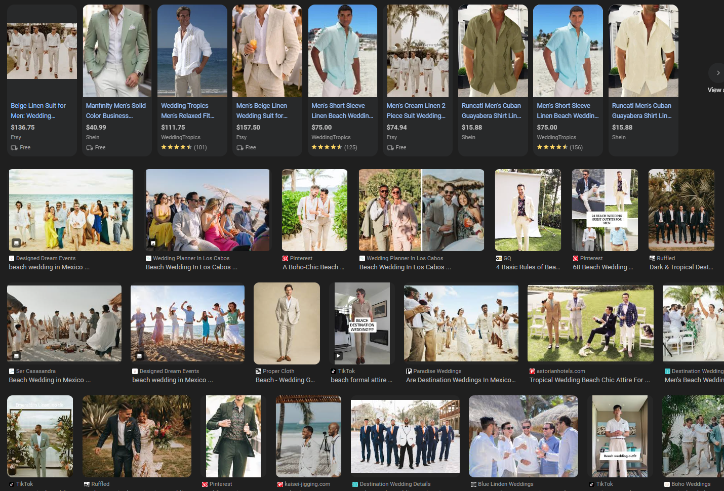 We want everyone to look super nice, feel comfortable, and have fun with color. Think tropical, vibrant, and dressed‑up, but still breathable for a warm July evening in Puerto Vallarta.